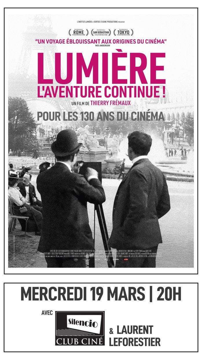 En ce jour si particulier pour les cinéphiles français, Le 19 mars 1885 est un jour qui ne s'oublie pas. C'est le jour de "La Sortie des Usines Lumière". 130 ans cette année! Le Silencio-Club-Ciné a fêté cet anniversaire avec le soutien du Cinéma Le France, et les éclairages avertis de Laurent Le Forestier, professeur de cinéma à l'Université de Lausanne: sa connaissance remarquable de l'histoire du cinéma et des frères Lumière nous a permis d'avoir une discussion de très grande qualité et d'en apprendre beaucoup sur cette mystérieuse boite cubique aperçue dans les 2-3 premiers making-off de l'histoire du cinéma.