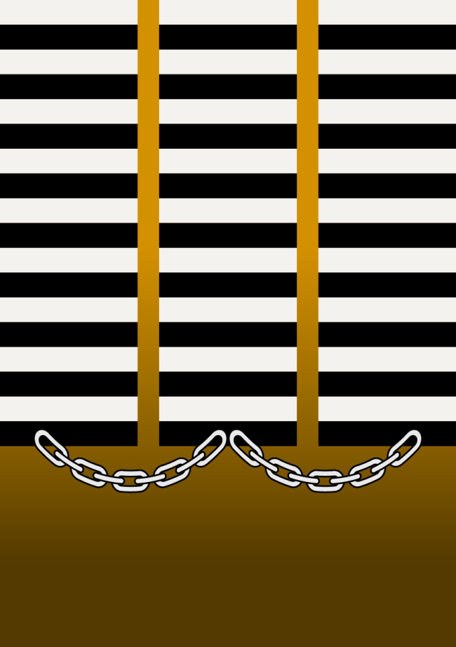 Les Lanières Verticales et les Chaînes : Ces éléments représentent directement les chaînes qui les lient ensemble (le chain gang) et la nécessité de briser ces liens pour retrouver leur liberté, tout en faisant également référence aux bretelles ou aux uniformes ruraux qu'ils portent.