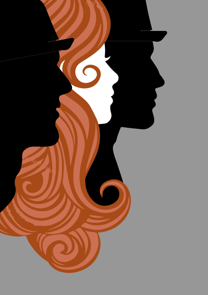 Le Contraste Visuel : La silhouette féminine centrale en blanc symbolise sa pureté et sa complexité insaisissable, contrastant avec l'ombre (ou l'opacité) des deux hommes.